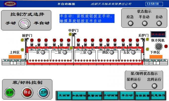 3、全自动控制:采用HMI+PLC控制,人机界面实时监测工件和设备运行状态,一键操作实现工件上料—预热—保温—出料,实现全自动程序。