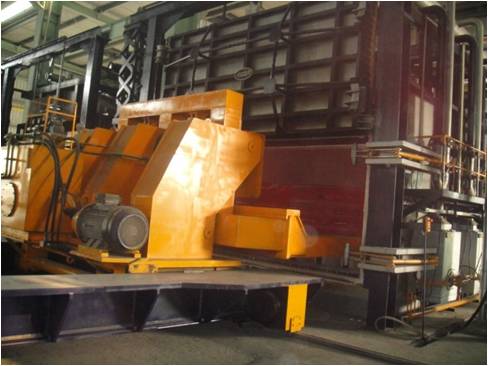 2、装取料运行车:可实现将工件从箱室炉中热态取出,并将其转移至自动淬火漕上实现自动淬火,淬火转换时间≤20S。