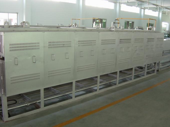 4、冷却段、循环系统的作用是使带料无氧化冷却。冷却段起保护作用,防止氧化性气体进入,同时充进还原性气氛,循环系统使充入冷却段的气氛循环流动,带走带料上的热量,再经过热交换器冷却再次充入冷却段。